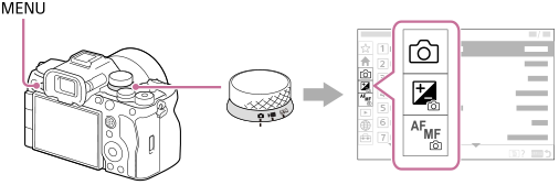 - Os itens de menu apresentados diferem entre os modos de fotografia de imagens fixas e os modos de gravação de filmes.