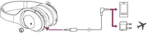 Z zestawu nagłownego można korzystać tak jak ze słuchawek z funkcją usuwania szumów poprzez podłączenie urządzenia za pośrednictwem dostarczonego kabla słuchawkowego i włączenie zestawu. Zestaw nagłowny obsługuje odtwarzanie dźwięku wysokiej rozdzielczości po podłączeniu dostarczonego kabla słuchawkowego i włączeniu zestawu.