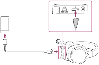 - A csatlakoztatott WALKMAN eszköz nem töltődik, ha a fejhallgatóhoz van csatlakoztatva.