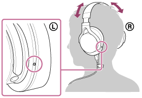 Roztiahnutím hlavového mostu prispôsobte jeho dĺžku. Založte si slúchadlá označením