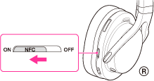 Când comutatorul NFC este setat la OFF, nu puteţi realiza conexiunea. Puteţi seta comutatorul la OFF pentru a evita pornirea sau conectarea accidentală cu alte dispozitive în cazul în care atingeţi căştile de un alt aparat. Totuşi, dacă setaţi comutatorul la OFF când setul de căşti este conectat cu un alt dispozitiv, puteţi deconecta căştile de la dispozitiv atingându-le de dispozitivul respectiv.