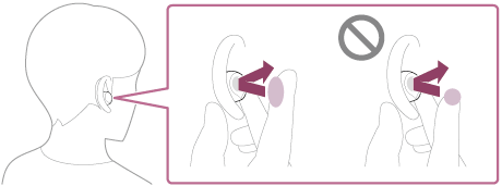 - Du kan ikke betjene berøringssensorene når du ikke har på headsettet. Hvis du deaktiverer bruksregistreringens automatiske avstengingsfunksjon med "Sony | Headphones Connect"-appen, kan berøringssensorene brukes selv når headsettet ikke er satt på.