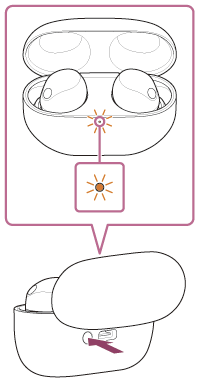 - Ikke løft fingeren av nullstillingsknappen på ladeetuiet mens indikatoren (oransje) blinker. Hvis du løfter fingeren initialiseres headsettet.