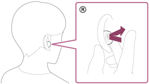 - Hoppa till början av föregående spår (eller nuvarande spår under uppspelning): Tryck snabbt 3 gånger på beröringssensorn (med ett intervall på cirka 0,3 sekunder mellan tryckningarna).