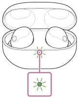 När initieringen är slutförd blinkar indikatorlampan (grön) på laddningsfodralet 4 gånger.