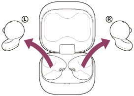Izvadite obje jedinice slušalica s mikrofonom iz kućišta za punjenje.
