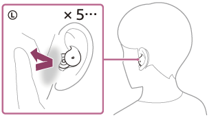 Zmniejszenie głośności: stuknij lewą słuchawkę zestawu słuchawkowego lub obszar wokół ucha 5 lub więcej razy szybko (z przerwą między stuknięciami wynoszącą około 0,4 sekundy lub mniej) podczas odtwarzania muzyki.