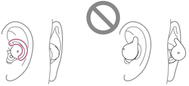 - Om headsetenheterna lätt lossnar från öronen så ska du följa stegen nedan för att se till så att du bär headsetenheterna ordentligt.