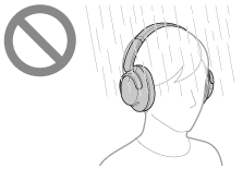 Se um sistema de auscultadores molhado for carregado ou ativado, pode ocorrer um incêndio ou uma avaria. Submetendo o sistema de auscultadores à menor quantidade de vibrações possível, rode as almofadas de auriculares lentamente para baixo e deixe a água escorrer das almofadas. De seguida, posicione o sistema de auscultadores na vertical e coloque um pano seco sob a porta USB Type-C e a tomada de entrada do cabo para auscultadores até não sair mais água do interior. Depois disso, deixe o sistema de auscultadores num local à sombra e bem ventilado até ficar completamente seco.