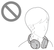 Dotýkanie sa slúchadiel spotenými rukami alebo používanie slúchadiel v situáciách, keď sa slúchadlá môžu namočiť potom