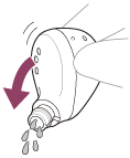 Drei mikrofondelen eller lufthullet nedover og bank forsiktig mot en tørr klut e.l. omtrent fem ganger for å fjerne vann fra innsiden.