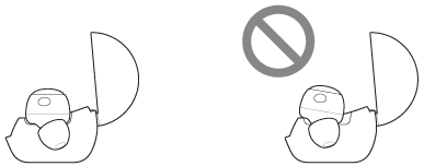 - Hvis ørepluggene ikke er riktig koblet til headsettenhetene, kan ikke headsettenhetene lades med det ladeetuiet. Sjekk at ørepluggene er riktig tilkoblet når du setter headsettenhetene i ladeetuiet.