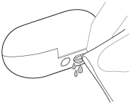 - När headsetenheternas eller laddningsfodralets laddningsportar blir smutsiga ska de torkas av med en mjuk, torr trasa.