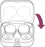 Lorsque le casque est rangé dans l’étui de recharge, le témoin (bleu) de l’étui de recharge clignote lentement pendant 5 secondes environ.
