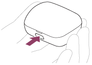 Maintenez la touche de pairage de l’étui de recharge enfoncée pendant 5 secondes environ ou plus.