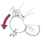 Orientez la sortie audio vers le bas et tapotez légèrement à 10 reprises environ au-dessus d’un chiffon sec ou autre pour évacuer l’eau éventuellement présente à l’intérieur.