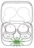 - Lorsque le niveau de charge restant de la batterie de l’étui de recharge n’est pas suffisant, l’initialisation du casque ne commence pas. Chargez l’étui de recharge.