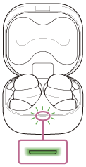 - Ako lampica (zelena) na kućištu za punjenje ne bljeska četiri puta nakon izvođenja koraka 3, slušalice s mikrofonom nisu inicijalizirane. Pokušajte ponovno od koraka 2.