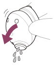 Odstranite konici ušesnih čepkov, zvočna kanala (cevki za izhod zvoka) obrnite navzdol in slušalke večkrat stresite, da odstranite vodo.