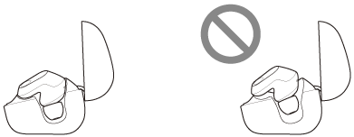 - Pokud nejsou koncovky sluchátek ke sluchátkům správně připojeny, sluchátka nemusí být možné nabíjet pomocí dodaného nabíjecího pouzdra. Při ukládání jednotek sluchátek do nabíjecího pouzdra zkontrolujte, zda jsou koncovky sluchátek správně připojeny.