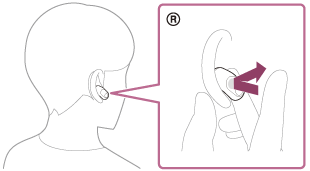 - Bajar el volumen: mantenga el dedo sobre el sensor táctil de la unidad derecha de los auriculares durante la reproducción de música para bajar el volumen de forma continua. Aparte el dedo del sensor táctil cuando llegue al volumen que desee.