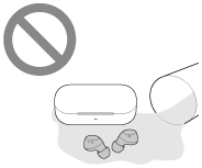 Ако модулите на слушалките или кутията за зареждане се намокрят или замърсят, вижте “Когато модулите на слушалките или кутията за зареждане се намокрят” и ги почистете преди употреба, както е описано по-горе.