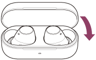 Para desligar a alimentação antes de os auscultadores desligarem automaticamente, coloque as unidades dos auscultadores na caixa de carregamento e feche a respetiva tampa.