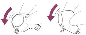 Îndepărtați elementele auriculare, poziționați canalele de sunet (canale de emitere a sunetului) cu fața în jos și scuturați bine pentru a elimina apa.