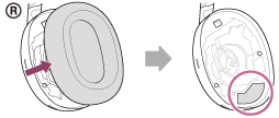 Fjern ørepuden fra den højre enhed ved at trække den lige ud af huset. Undgå at trække den ud i en vinkel.