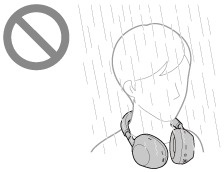 Hvis et vådt headset oplades eller tændes, kan det resultere i funktionsfejl, eller at det brænder af. Vend headsettet om, men undgå så vidt muligt vibrationer, og læg en tør klud på headsettet, indtil der ikke kommer mere vand ud af hullet i bunden af skydersektionen. Placer derefter headsettet på et skyggefuldt sted med god udluftning, indtil det er helt tørt.
