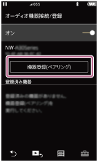 設定]–[Bluetooth]–[オーディオ機器接続/登録]の順に選ぶ。 -