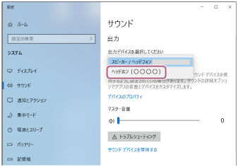 [出力デバイスを選択してください]のプルダウンメニューから[ヘッドホン(WH-1000XM6 Stereo)]を選ぶ。