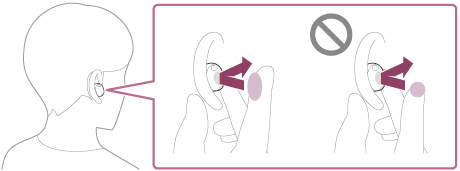 - Dotykové snímače nelze používat, když nemáte sluchátka nasazená. Pokud zakážete funkci automatického vypnutí na základě detekce opotřebení pomocí tlačítka “Sound Connect” aplikace, můžete dotykové senzory používat, i když náhlavní soupravu nenosíte.