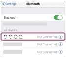 - Kun yhteys muodostetaan, [WF-1000XM6], [LE_WF-1000XM6] tai molemmat voivat näkyä liitäntälaitteessa. Jos molemmat näytetään, valitse [WF-1000XM6].