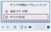 パソコンの画面で、ツールバーのスピーカーアイコンを右クリックして[サウンドの設定]を選ぶ。