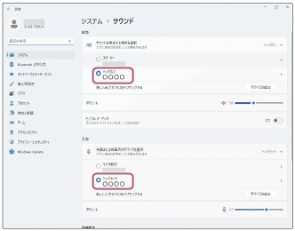 [サウンド]画面の[出力]および[入力]で[WF-1000XM6]を選ぶ。