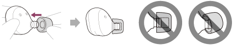 Empurre a ponta do auricular com firmeza para a conduta de som do auricular (tubo de saída de som) até ficar bem encaixada. Não deixe a ponta do auricular solta ou torta.