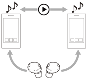 - Ako započnete reprodukciju upravljanjem drugim uređajem dok reprodukujete muziku na prvom uređaju, muzika drugog uređaja će se čuti preko slušalica.
