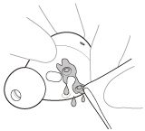 2. Αφαιρέστε τα earbud tips, γυρίστε τους αγωγούς ήχου (αυλοί εξόδου ήχου) προς τα κάτω και ανακινήστε τα πολλές φορές για να απομακρύνετε το νερό.