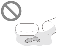 • Če enote slušalk in ohišje za polnjenje polnite, ko so omočene od potu ipd., bo prišlo do korozije vrat za polnjenje. Pred polnjenjem vlago obrišite z mehko suho krpo in slušalke pustite na sobni temperaturi, da se popolnoma posušijo.