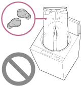 • Pred pranjem enoti slušalk ali ohišje za polnjenje vzemite iz žepov hlač ali srajc.
