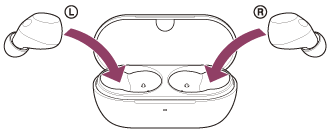 Stavite lijevu jedinicu slušalica označenu taktilnom točkom natrag u lijevi otvor kućišta za punjenje i vratite desnu jedinicu slušalica natrag u desni otvor kućišta za punjenje. Svaku jedinicu slušalica s mikrofonom ugrađenim magnetom postavit će se u pravilan položaj u kućištu za punjenje.