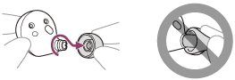 Umetak za uši čvrsto potisnite na zvukovod (cijev za izlaz zvuka) na slušalicama s mikrofonom kako bi umetak za uši prekrivao unutrašnji dio zvukovoda. Nemojte postavljati umetak za uši labavo ili nakrivljeno.