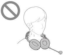 - Toccare le cuffie con le mani sudate o utilizzare le cuffie in situazioni nelle quali le cuffie potrebbero bagnarsi di sudore.