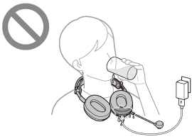 Le cuffie non sono impermeabili all’acqua. Se acqua o corpi estranei penetrano nelle cuffie, può verificarsi un surriscaldamento o un malfunzionamento.