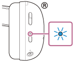 着信すると、ヘッドセットから着信音が聞こえ、Bluetoothランプが青色に早く点滅します。