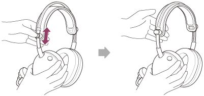 Flytta reglaget uppåt och nedåt för att justera huvudbandets höjd.