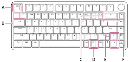 • Anche se si assegnano altre funzioni a tasti specifici utilizzando le impostazioni di assegnazione dei tasti di “INZONE Hub”è comunque possibile utilizzare le operazioni sui tasti elencate nella tabella precedente per commutare le operazioni sulla tastiera e regolare la luminosità dell'illuminazione dei tasti.