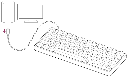 Tenendo premuti i tasti Esc e F4, collegare il cavo USB Type-C collegato alla tastiera a una porta USB del computer.