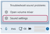 Højreklik på højttalerikonet på værktøjslinjen på din computerskærm, og vælg derefter [Sound settings].